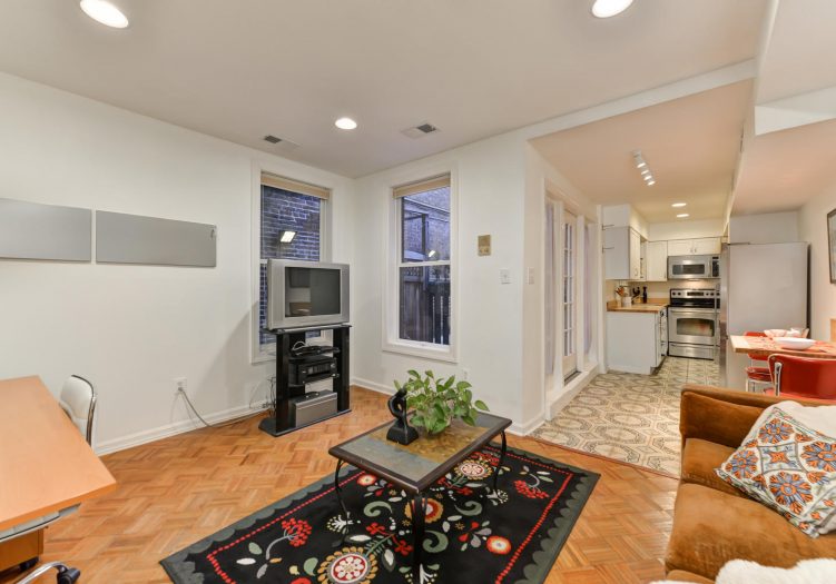 If yours is the artsy, creative vibe, this sweet Dupont pied-a-terre could be the one. Hate the big boxes and boring spaces? From the moment you enter this gorgeous townhouse-style 1 bedroom, you’ll realize you’ve happened upon something special. After shopping at Glen’s Garden Market or the organic Dupont farmers’ market, you can roll your bike straight in, through the private entrance to your own spacious (above ground!) patio and through the unit’s charming glass-front door. The boho ceramic tile floor and renovated kitchen greet you - unpack the groceries and pop open a bottle to enjoy with a book outside (or, go on up to the shared roofdeck!). Still like the conveniences of modern living? The living room and bedroom are spacious with good storage, hardwood parquet floors, and there’s an in-unit washer/dryer, central A/C, and dual-entry bath too!