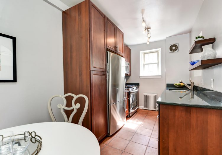 Welcome home to this art deco gem, perched high up on a quiet, yet convenient block of Glover Park. This generously-sized one bedroom corner unit boasts windows in every room, hardwood floors throughout, closets designed by California Closets and an updated bath and kitchen. Completely renovated with newer cabinetry, this eat-in kitchen also has stainless appliances, gas cooking and granite. With a pass-through to the living room, it’s the perfect entertaining space when friends are over, or on beautiful days, take them downstairs to the picnic and grill area.