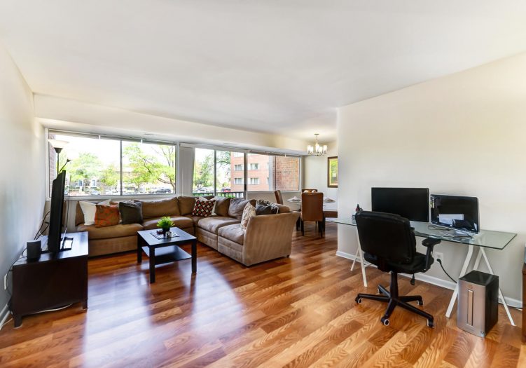 Such an amazing value and convenient, inside-the beltway-location at this classic mid-century building just off I-395! One floor above grade, light pours through the huge picture windows in every room of this large two bedroom condo, shining a spotlight on the top to bottom renovations. The living area is large enough for any Super Bowl party, there’s a dedicated dining area for more intimate moments, and there’s still enough room for a home office in the main living space. Party prep is easy in the large kitchen, complete with new 42” cabinetry, granite, and stainless appliances including gas range and dishwasher (plus all appliances are just six months old!). The bathroom has been renovated with a deep tub, wainscoting, and neutral tile. Bedrooms are large, and storage is plentiful, with great walk-in master closet, huge walk-in hall storage, and a double-door closet in the 2nd bedroom. Brand new flooring spans the condo, and with ample parking, a private balcony and a beautiful community pool ready for summer, what more could you want? Come, rest easy, and enjoy – you’re home!